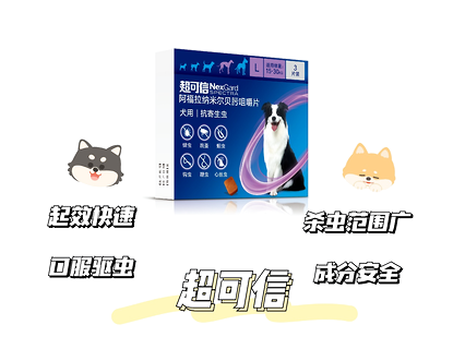 超可信驅蟲藥兩大成分是阿福拉納和米爾貝肟,這兩種成分的安全性高,適用于8周齡及2kg以上幼犬及成犬,并且藥效只針對寄生蟲,對狗狗和人體沒有副作用。口服的必須安全,這是對狗狗和人最大的保障。