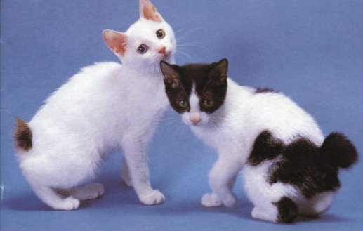 日本短尾貓,又名日本截尾貓。這種貓是由于基因突變而產(chǎn)生的品種。日本短尾貓?jiān)谌毡颈就烈延幸磺曜笥业臍v史,有人認(rèn)為它是1000多年前由中國(guó)或朝鮮傳入日本的。日本短尾貓的尾巴僅長(zhǎng)10厘米左右,與馬恩島貓都是尾巴最短的貓品種。日本短尾貓中以三色貓最為受歡迎,但紅白貓、白貓也很多。招財(cái)貓的樣子即來(lái)自于日本短尾貓日本短尾貓卷曲的尾巴全長(zhǎng)5一1 0公分。頭部的頰骨高,鼻子長(zhǎng);眼睛為上揚(yáng)的圓卵型。體型結(jié)實(shí),肌肉十分發(fā)達(dá)。受歡迎的花貓?jiān)谶z傳學(xué)上幾乎都是雌貓。日本短尾貓具有獨(dú)特的東洋五官,體毛十分光滑。所有的毛色均獲得認(rèn)可,但以白,黑,褐色混合的花貓最受歡迎。其個(gè)性開朗,重感情,對(duì)小貓的照顧可說(shuō)無(wú)微不至。