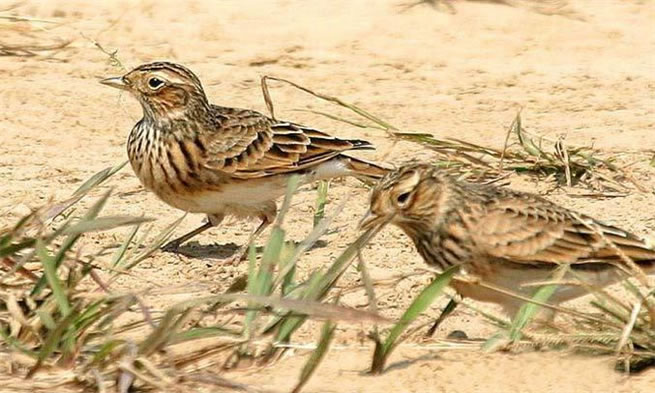 云雀有高昂悅耳的聲音。在求愛(ài)的時(shí)候,雄鳥會(huì)唱著動(dòng)聽的歌曲,在空中飛翔,或者響亮地拍動(dòng)翅膀,以吸引雌鳥的注意。營(yíng)巢在荒漠草地上凹坑處,也在種植植物的堤坎上或灌木叢中。巢呈淺杯形,用雜草、毛發(fā)、鳥羽、須根等構(gòu)成,其上有垂草掩蔽,免受風(fēng)和太陽(yáng)的傷害。繁殖期4—7月。每窩產(chǎn)卵3—5枚,卵灰色,布有褐色斑點(diǎn),在鈍端的斑點(diǎn)匯集為圓環(huán)狀。大小約為9~10厘米。兩性輪流孵化,孵化期12—13天雛鳥破殼而出。剛出殼的雛鳥赤身裸體,只在一些部位長(zhǎng)有絨羽,留巢期11天,這期間由雙親共同哺育,主要是喂食昆蟲的幼蟲。