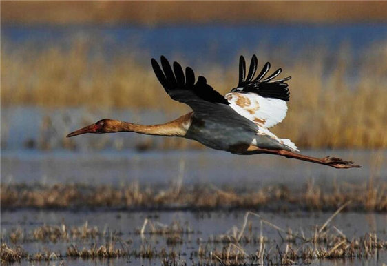 丹頂鶴需要潔凈而開闊的濕地環(huán)境作為棲息地,是對濕地環(huán)境變化最為敏感的指示生物。由于人口的不斷增長,使丹頂鶴的棲息地不斷變?yōu)檗r(nóng)田或城市,例如吉林省西部的月亮泡曾是丹頂鶴的繁殖地,因為人為進行圍湖筑堤,使堤內(nèi)水位上漲,挺水植物帶基本消失,堤外湖漫灘干涸,墾為農(nóng)田,丹頂鶴也從此絕跡;又如江蘇北部的邵伯湖與高郵湖之間的沼澤地帶,曾是丹頂鶴的越冬地,由于每年到該地漁,牧和狩獵的人不斷增多,增加了人為干擾,以及揀卵、偷獵等,使丹頂鶴的數(shù)量急劇減少。