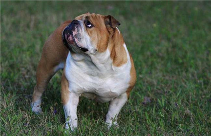 英國斗牛犬體高35-50cm左右,重量約30-45公斤,屬中型犬。皮毛光滑,身體矮胖健壯而沉重,頭大額寬,嘴往上翹,下顎比上顎凸出且向上微彎呈地包天形態(tài)。寬闊的肩膊及強(qiáng)壯的四肢。整體外型及姿態(tài)表現(xiàn)出渾身是勁和極大的穩(wěn)定性。
